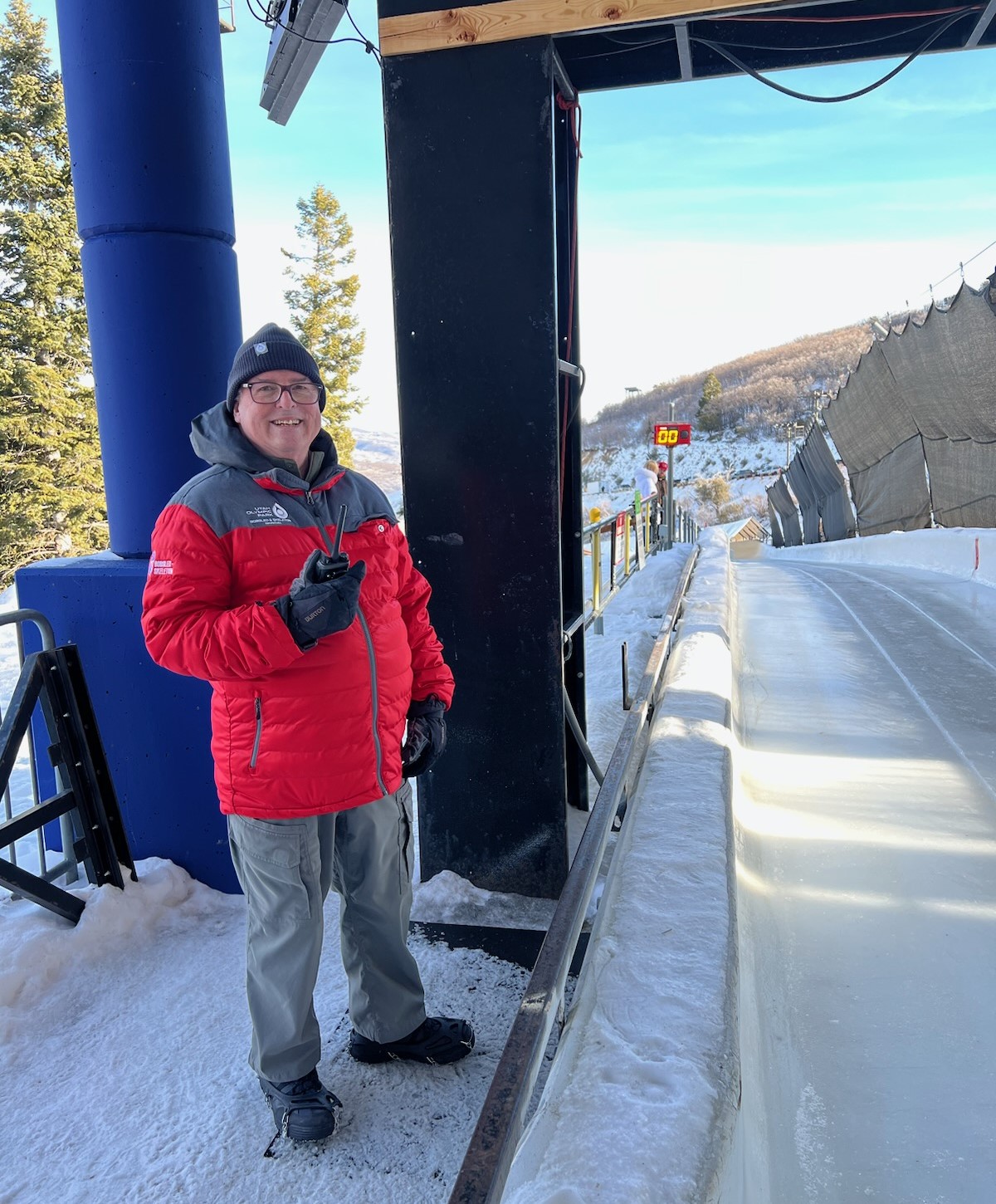 Photo – Bill as a Bobsled/Skeleton Official at Utah Olympic Park for 12 years.